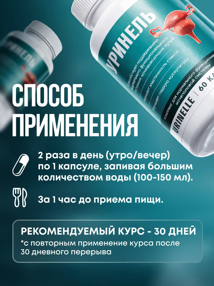 Средство возвращает нормальную работу мочеполовой системы, убирая резь и жжение во время мочеиспускания, постоянное желание в туалет днём и ночью, случайные подтекания и неконтролируемые выделения — самые неприятные проявления недержания и хронического цистита. Уринель уменьшает воспаление, восстанавливает целостность слизистой, усиливает естественную защиту и не даёт инфекции распространяться дальше. При регулярном приёме поддерживает стабильное состояние мочевого пузыря и помогает избежать новых приступов.